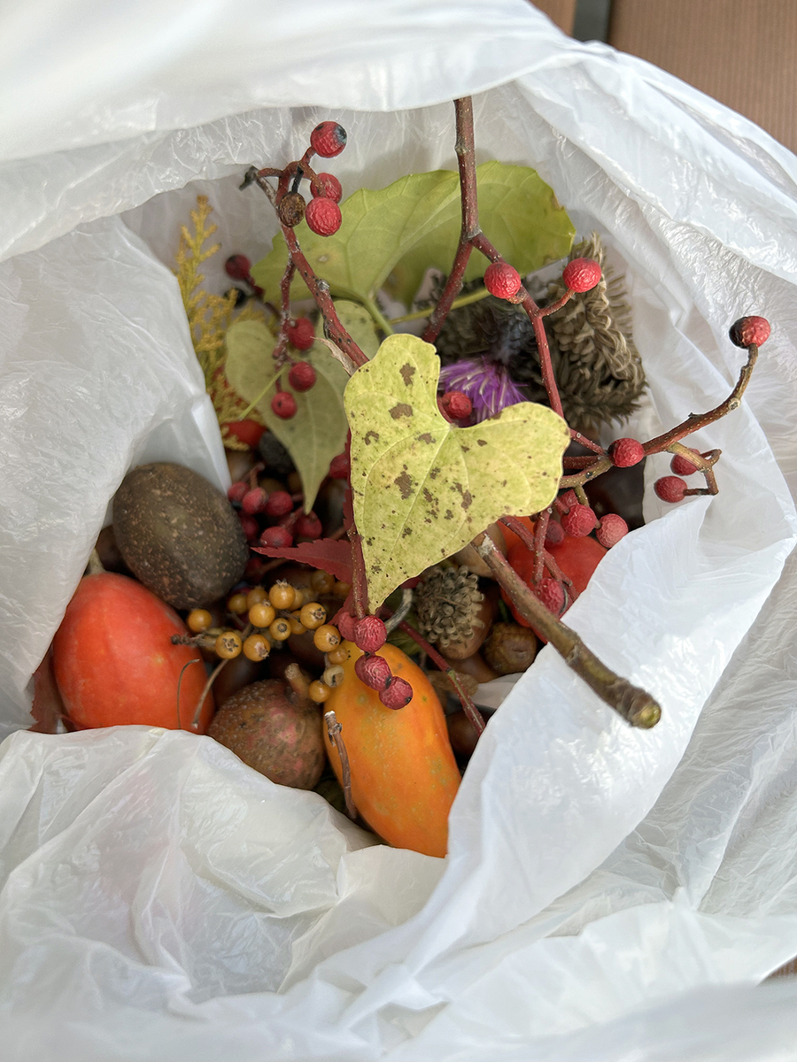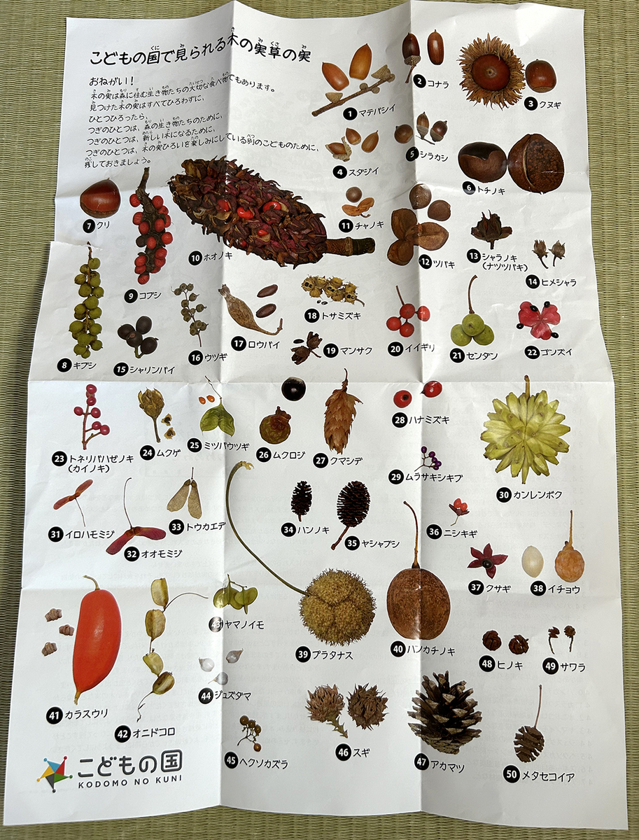 おなじみのどんぐりの他にもハンカチノキの実とか、初めて見るような実がたくさん落ちてて、宝物探しみたいな気分で親子で夢中で探してしまいました。
