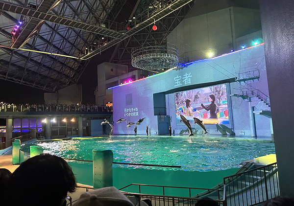 日が傾いてから遊園地ゾーンで遊んだり、また水族館に戻ってショーを見たり。