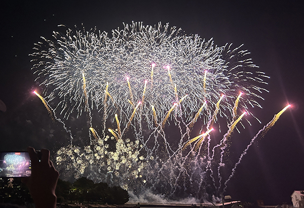 そして夜は10分間の花火があったのですが、間近で見れてめちゃくちゃきれいでした。
